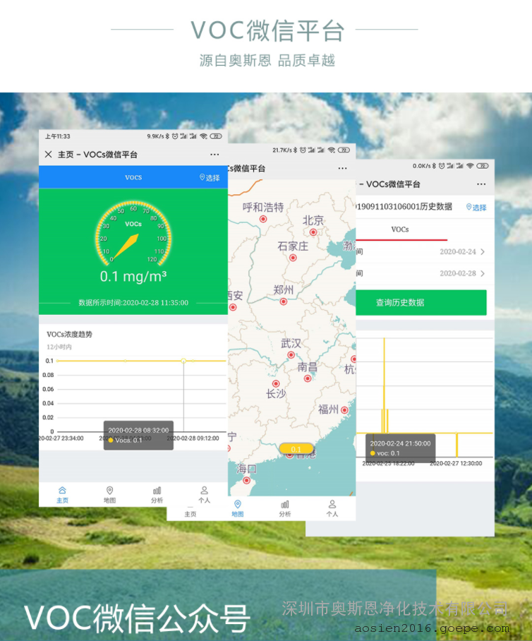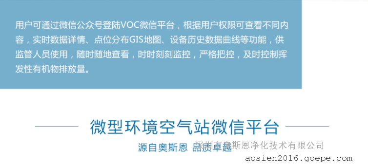 奥斯恩专注于环境监测仪器的研发,生产制造,销售和提供整套技术服务,配套物联网云平台,生态环境大数据可视化平台,环保应用软件的开发和运营,主营微型空气站,VOCs在线监测预警仪,扬尘在线监测仪,走航式环境监测系统,油烟在线检测仪,恶臭监测仪,氮氧化物监测系统,工况用电监测仪,噪声环境监测系统,负氧离子监测系统,便携式环境检测仪及环保信息化平台(Web端,APP或微信公众号,数据大屏幕),建立有2000㎡的生产基地,完整的老化标定车间,产品实验室,生产规模及品控处于行业领先水平。拥有一支20多人组成的技术研发团队为了让您更全面准确的了解我司的研发,生产,销售等相关情况,在此,深圳奥斯恩诚挚的邀请您莅临我司考察,指导,洽谈合作,共谋发展,共赢未来。